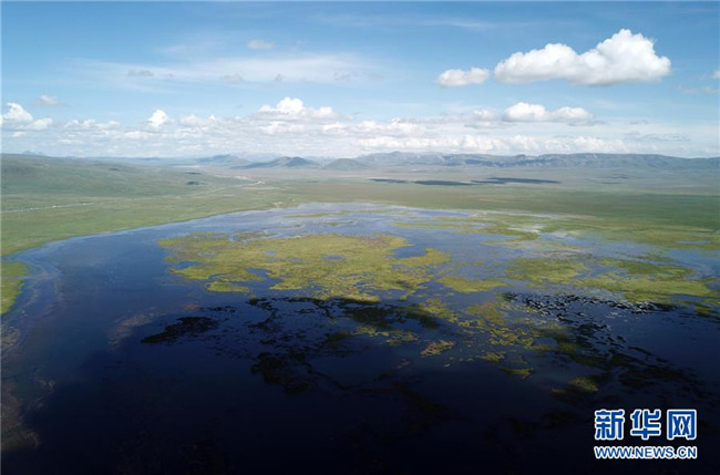 7月29日無人機(jī)拍攝的尕海湖。 新華社記者 馬寧 攝