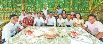 新疆巴音郭楞蒙古自治州尉犁縣興平鎮(zhèn)達(dá)西村村干部在一起。李 飛攝