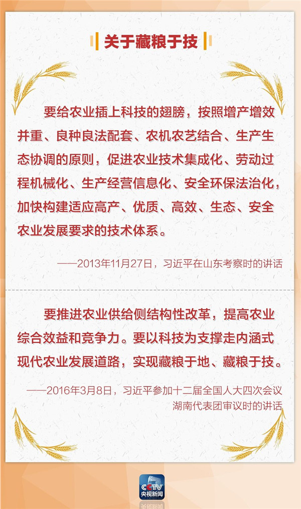 2013年11月,習(xí)近平在山東農(nóng)科院召開座談會(huì)時(shí)表示,手中有糧,心中不慌。保障糧食安全對(duì)中國來說是永恒的課題,任何時(shí)候都不能放松。