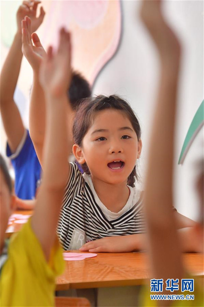 8月17日,在廣西柳州市融安縣“老鄉(xiāng)家園”,龔慧玲在“七彩假期”趣味數(shù)學(xué)課上學(xué)習(xí)。新華社記者 黃孝邦 攝
