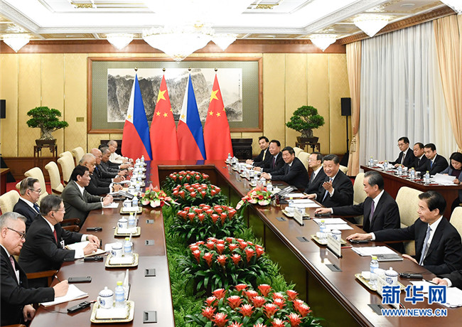 國(guó)家主席習(xí)近平29日晚在釣魚臺(tái)國(guó)賓館會(huì)見菲律賓總統(tǒng)杜特爾特。