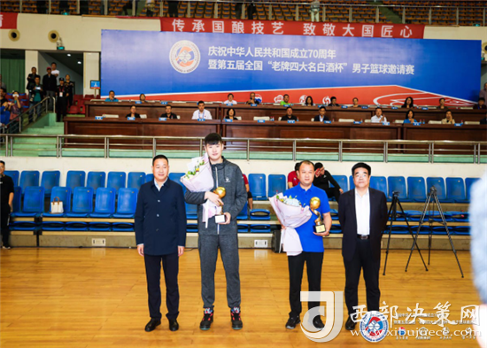 9月19日晚,由貴州茅臺酒廠(集團)有限責任公司、山西杏花村汾酒集團有限責任公司、陜西西鳳酒廠集團有限公司與瀘州老窖股份有限公司共同主辦,瀘州老窖股份有限公司承辦的慶祝中華人民共和國成立70周年暨第五屆“老牌四大名白酒杯”男子籃球邀請賽(以下簡稱“男籃邀請賽”)在酒城瀘州奧林匹克體育公園圓滿閉幕。貴州茅臺酒股份有限公司監(jiān)事會主席羅國慶,山西杏花村汾酒集團有限責任公司黨委委員、董事、工會主席李明強,陜西西鳳酒廠集團有限公司工會主席陳軍紅,瀘州老窖股份有限公司黨委副書記、總經理林鋒及黨委副書記、紀委書記、工會主席江域會,信息總監(jiān)蘇王輝等領導和嘉賓出席了閉幕式。