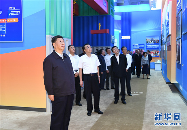 李克強(qiáng)、汪洋、王滬寧、趙樂際、韓正、王岐山參觀展覽。