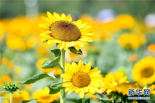 近日,位于長(zhǎng)沙市的湖南省森林植物園中的向日葵在秋陽(yáng)下競(jìng)相綻放,黃花綠葉交相輝映,吸引眾多市民、游客前來(lái)觀賞。
