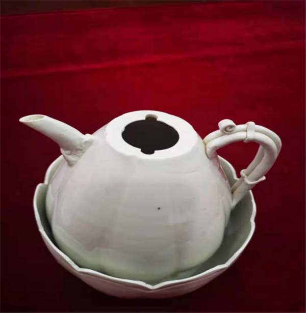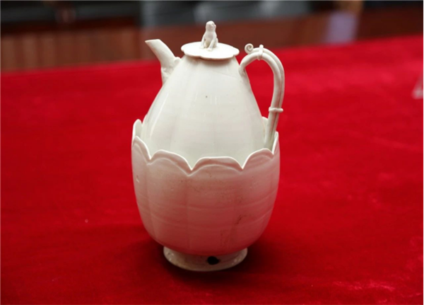 本次發(fā)現(xiàn)最具特色文物當屬宋代官窯白瓷——白釉獅鈕瓜棱形帶花口溫碗執(zhí)壺。該款文物造型精美、器型罕見,國內(nèi)尚未發(fā)現(xiàn)同款,具有特別重要的歷史藝術(shù)和科學文化價值。經(jīng)陜西省文物鑒定中心鑒定:該文物屬國家一級,通高22.5厘米,壺口徑5厘米,底徑6.5厘米,溫碗口徑14厘米,底徑8.5厘米。該文物由蹲獅型鈕壺蓋、瓜棱形執(zhí)壺、帶鏤空足瓜腹形花口溫缽等三部分組成。從與該一級文物同時出土的慕志銘得知,該墓葬主人為宋代眉縣斜谷鎮(zhèn)下將張侍郎(相關(guān)于現(xiàn)今的鄉(xiāng)鎮(zhèn)教育專干)之父母(為合葬墓)。