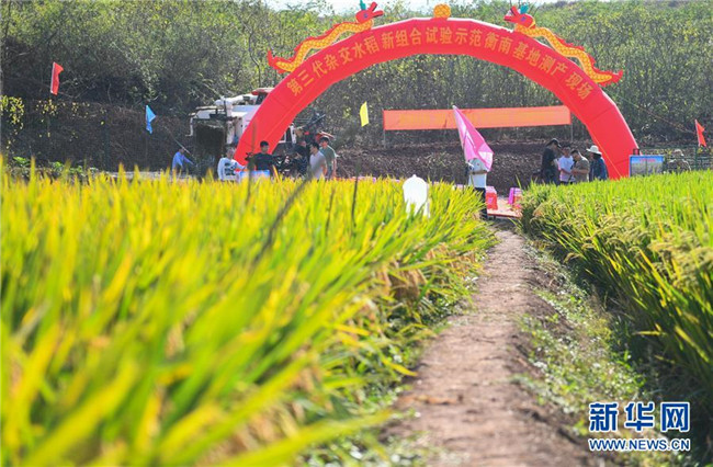這是第三代雜交水稻新組合試驗(yàn)示范衡南基地測(cè)產(chǎn)現(xiàn)場(chǎng)(10月21日攝)。 新華社記者 陳澤國(guó) 攝