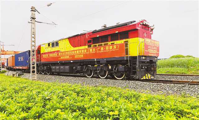滿載125臺整車的專列從重慶沙坪壩區(qū)團結村中心站駛出,標志著西部陸海新通道整車出口常態(tài)化班列的開啟。(本報資料圖片) 記者 羅斌 攝
