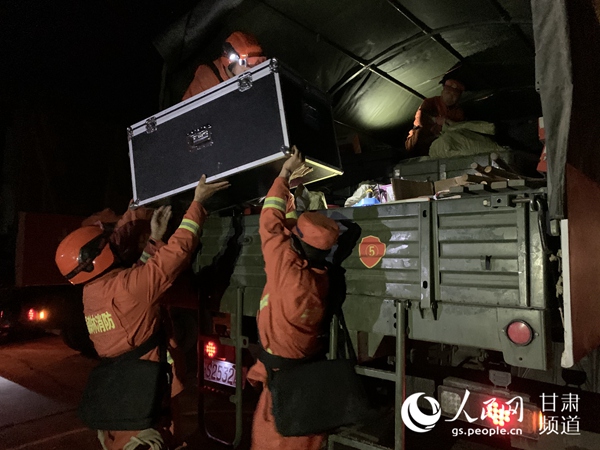 先遣分隊(duì)指戰(zhàn)員準(zhǔn)備救災(zāi)物資。(甘肅省森林消防總隊(duì)供圖)