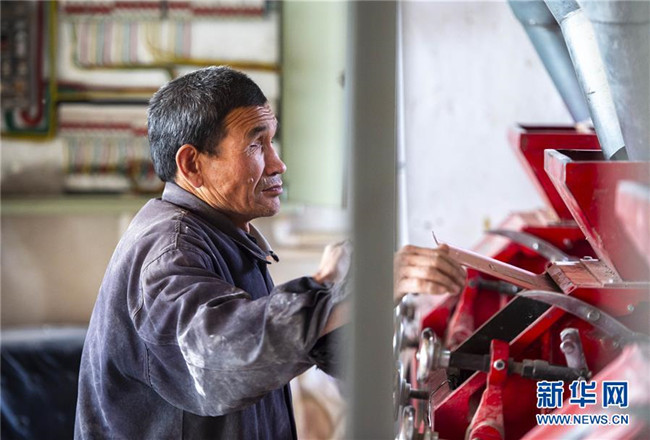馬騰俊在操控電動磨面機(10月25日攝)新華社發(fā)(楊植森 攝)