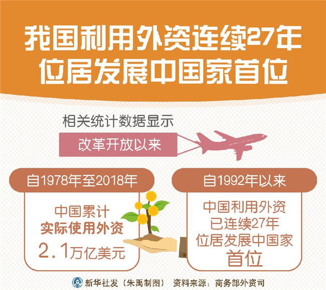 葉威透露,相關(guān)統(tǒng)計(jì)數(shù)據(jù)顯示,改革開放以來,自1978年至2018年,中國累計(jì)實(shí)際使用外資2.1萬億美元;自1992年以來,中國利用外資已連續(xù)27年位居發(fā)展中國家首位。