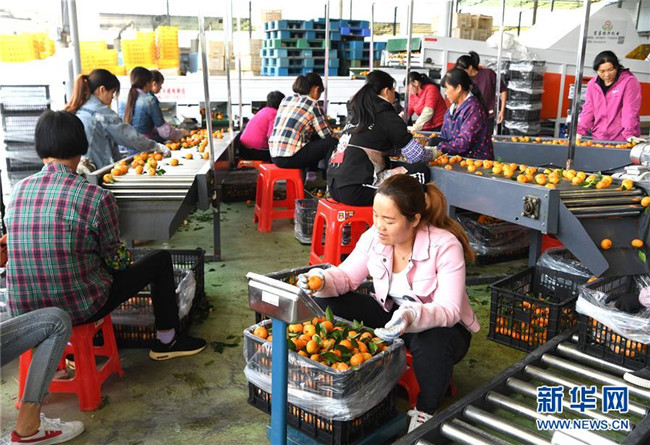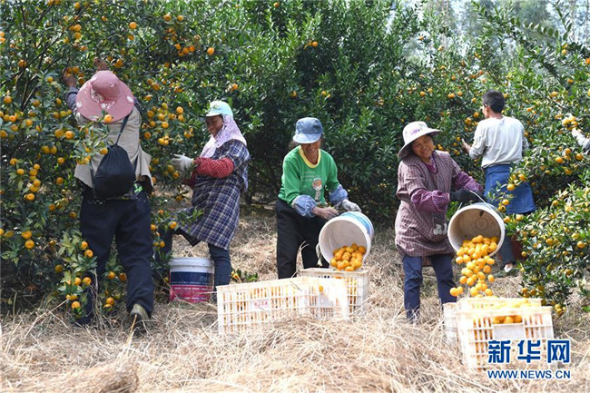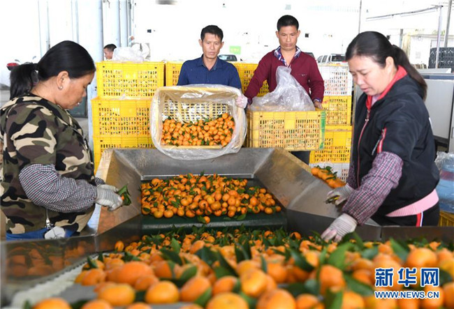 時下正是廣西鹿寨縣平山鎮(zhèn)數(shù)萬畝柑桔成熟上市的季節(jié)。據(jù)悉,2018年平山鎮(zhèn)柑桔產(chǎn)值3.29億元,隨著當(dāng)?shù)馗探鄯N植面積不斷擴大,柑桔產(chǎn)業(yè)成為村民脫貧致富的重要產(chǎn)業(yè)。 新華社記者 周華 攝