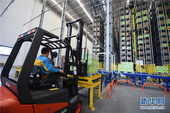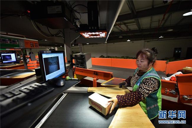 工作人員在南京市雨花經(jīng)濟(jì)開發(fā)區(qū)一家智慧物流基地內(nèi)忙碌(2016年11月3日攝)。該物流基地建筑面積達(dá)20多萬平方米,可存儲商品2000萬件,日處理包裹181萬件。整個物流基地實現(xiàn)全流程自動作業(yè),從訂單生成到商品出庫,最快可縮短到30分鐘。新華社發(fā)