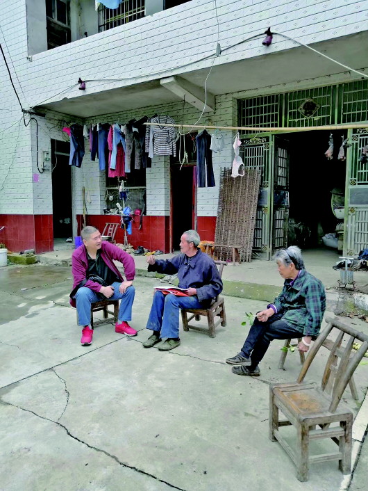 ▲朱明星(左一)到貧困戶(hù)家中交流。