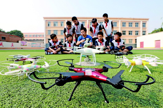 6月26日,河北省內(nèi)丘縣實(shí)驗(yàn)小學(xué)學(xué)生在參加無人機(jī)特色課程。近年來,該校推進(jìn)素質(zhì)教育,讓學(xué)生走出教室,參與到內(nèi)容豐富、形式多樣的特色教育活動中。新華社記者 朱旭東 攝