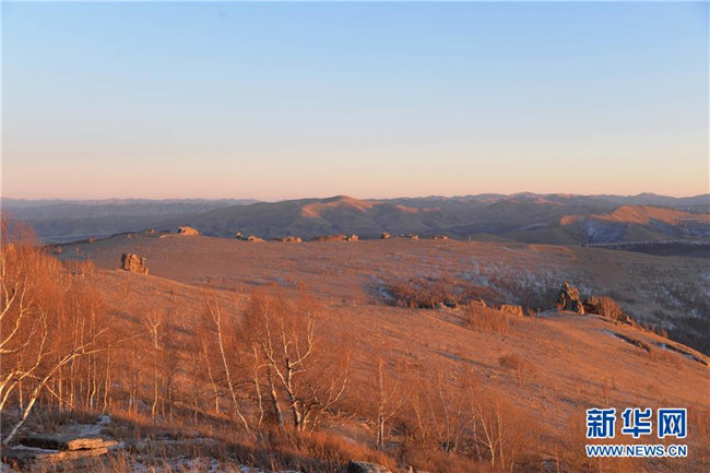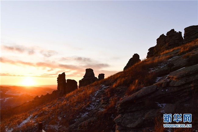 克什克騰石陣景區(qū)位于內(nèi)蒙古赤峰市克什克騰旗,是國家5A級景區(qū)。冬日黃昏,在落日和晚霞的映襯下,克什克騰石陣景區(qū)一派壯美景象。 新華社記者 徐欽 攝
