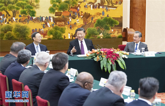 國家主席習近平3日在人民大會堂會見出席“2019從都國際論壇”外方嘉賓。