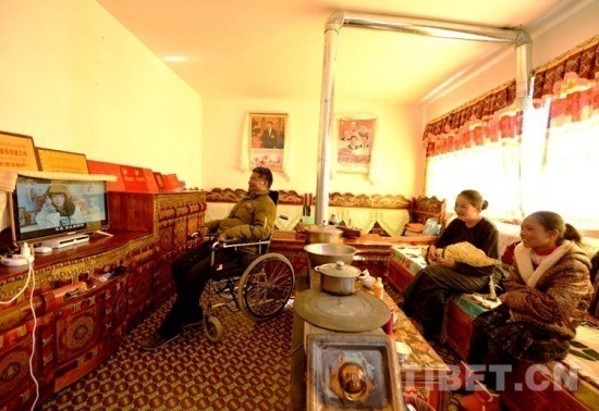 圖為安置點(diǎn)村民在家看電視 攝影:盧忠東 (圖片來(lái)自中國(guó)西藏網(wǎng))