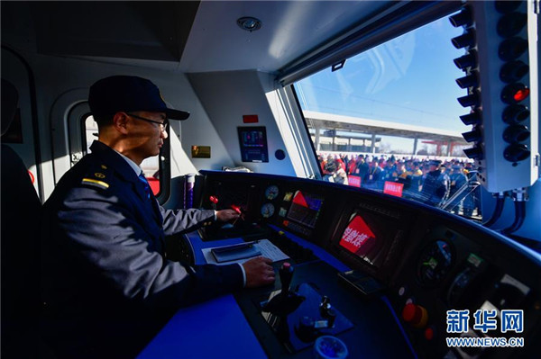 12月18日,在青海格爾木,中國(guó)鐵路青藏集團(tuán)有限公司西寧機(jī)務(wù)段列車(chē)司機(jī)季仁千扎西在開(kāi)通儀式上準(zhǔn)備發(fā)車(chē)。當(dāng)日,隨著肅北至馬海區(qū)段通車(chē),敦煌鐵路全線(xiàn)開(kāi)通運(yùn)營(yíng),中國(guó)西北地區(qū)形成首條環(huán)形鐵路網(wǎng)。新華社記者張龍攝