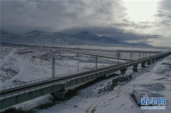 這是12月16日無(wú)人機(jī)拍攝的敦煌鐵路大柴旦站附近的一處鐵路橋。12月18日,隨著肅北至馬海區(qū)段通車(chē),敦煌鐵路全線(xiàn)開(kāi)通運(yùn)營(yíng),中國(guó)西北地區(qū)形成首條環(huán)形鐵路網(wǎng)。新華社記者張龍攝