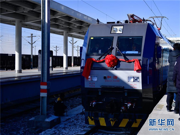 12月18日,在青海格爾木,列車(chē)駛出格爾木站。當(dāng)日,隨著肅北至馬海區(qū)段通車(chē),敦煌鐵路全線(xiàn)開(kāi)通運(yùn)營(yíng),中國(guó)西北地區(qū)形成首條環(huán)形鐵路網(wǎng)。新華社記者張龍攝