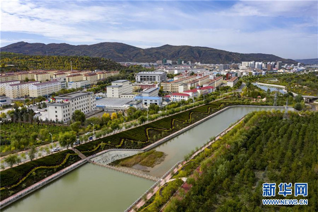 寧夏固原市隆德縣境內(nèi)的渝河兩岸健身步道、綠化景觀等設(shè)施完善,成為居民休閑娛樂的好去處(10月11日無人機(jī)拍攝)。 新華社記者 馮開華 攝