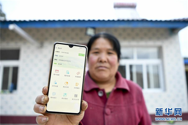 在寧夏固原市彭陽縣白陽鎮(zhèn)白岔村,村民展示可以“手機(jī)買水”的界面(10月11日攝)。 新華社記者 馮開華 攝