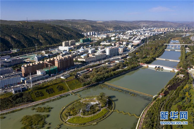 經(jīng)過綜合治理后的茹河成為寧夏固原市彭陽縣的一道新風(fēng)景(10月12日無人機(jī)拍攝)。 新華社記者 馮開華 攝