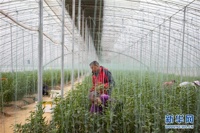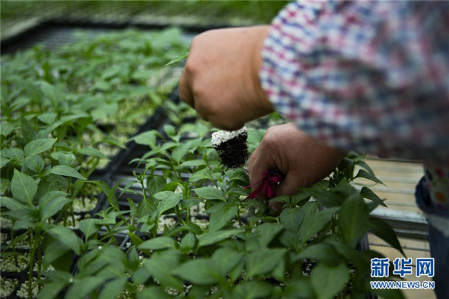12月18日,在于都縣禾豐鎮(zhèn)一家富硒蔬菜種植基地,農(nóng)民在采摘富硒辣椒。新華社記者 張浩波 攝