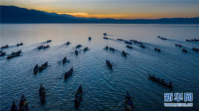 當(dāng)日,位于云南省玉溪市江川區(qū)的星云湖迎來(lái)一年一度的開湖捕魚季,600余艘漁船駛?cè)胄窃坪稉啤?星云湖是云南省九大高原湖泊之一,本次開湖捕魚時(shí)間將從2019年12月25日持續(xù)至2020年1月23日。 新華社記者 胡超 攝