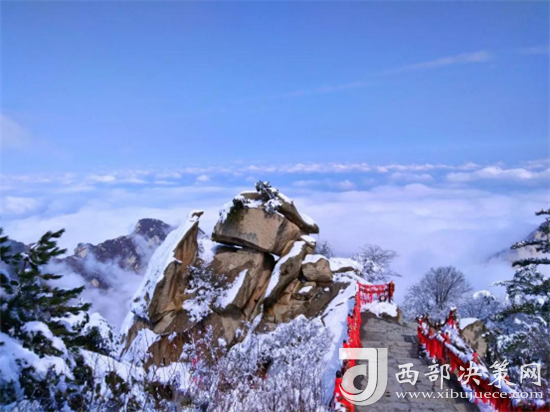 冬天的雪把華山裝扮成了銀白的世界,而且將華山的每一座山峰、每一棵松柏、每一塊石頭都變成了一個(gè)個(gè)千姿百態(tài)的雪雕藝術(shù)作品。“林海玉樹”、“雪堆玉石”、“云中雪龍”、“巖崖雪屋”、“梨花飛揚(yáng)”、“天女散花”、“紅帶玉墜”等等惟妙惟肖、栩栩如生,形成了賞心悅目的奇特景觀。矗立北峰,望山外三峰及四周,那華山的雪,層層疊疊,覆蓋著起伏的山巒,大雪漫天飛舞,鋪天蓋地,天地間一片潔白。