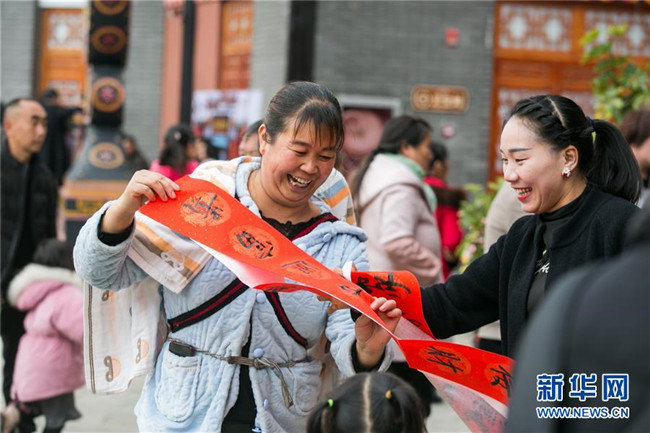 當(dāng)日,貴州省畢節(jié)市2020年迎新春“我們的中國夢”文化進(jìn)萬家惠民系列活動在大方縣易地扶貧搬遷集中安置區(qū)奢香古鎮(zhèn)舉行。文化志愿者用小品、歌舞、義寫春聯(lián)、拍“全家福”等形式為搬遷群眾帶來了一場精彩的文化“盛宴”,讓易地扶貧搬遷安置點(diǎn)充滿濃濃的年味。