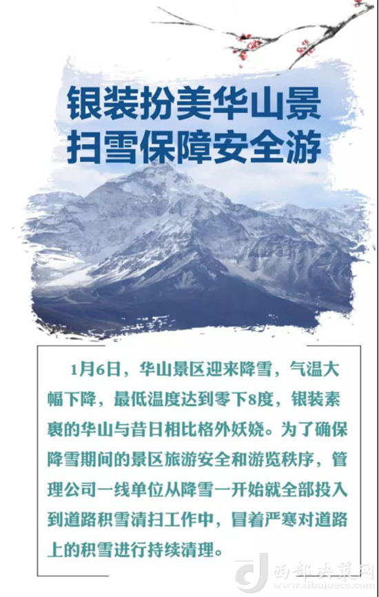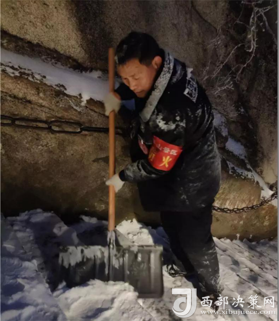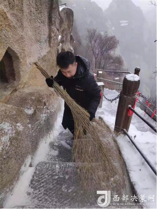 清晨天亮后,工作人員以常態(tài)化的工作要求持續(xù)對道路積雪進(jìn)行細(xì)化清掃,防止路面結(jié)冰,發(fā)生安全事故。(供稿:華山景區(qū)管理公司)