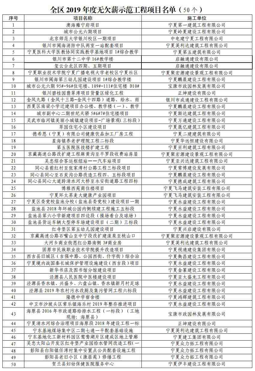 1月16日,記者從寧夏人力資源和社會保障廳獲悉,我區(qū)發(fā)布《關(guān)于2019年度全區(qū)無欠薪示范工程項(xiàng)目的通報(bào)》,對50個(gè)認(rèn)真履行農(nóng)民工工資支付各項(xiàng)政策的在建工程項(xiàng)目給予表揚(yáng)及企業(yè)誠信考核加分。