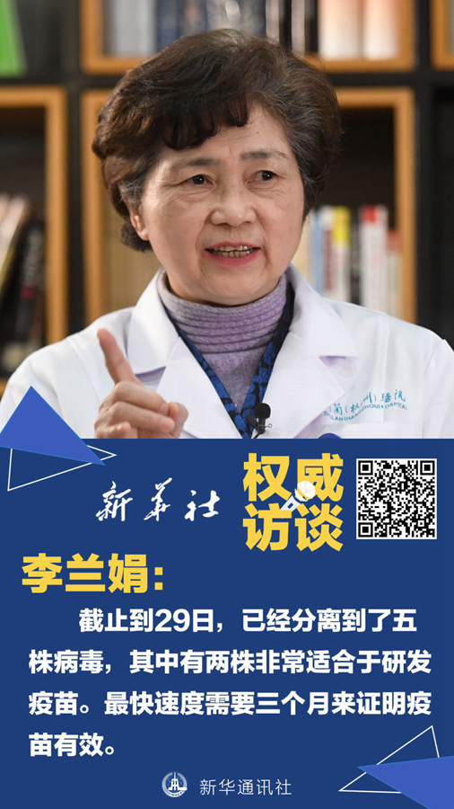李蘭娟:研發(fā)疫苗第一步是要獲得病毒株。目前,我們已經(jīng)分離到了五株病毒,其中有兩株非常適合于研發(fā)疫苗。分離到種子株之后,還要把種子株的病毒在細胞中培養(yǎng),讓它長到一定的量,這就需要一個多月。大量的細胞病毒拿到了,還要進行滅活,并對它的免疫原性如何,能不能預(yù)防、有沒有效果、有沒有毒力、會不會造成新的感染等開展實驗。