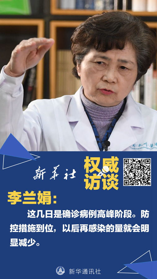 李蘭娟:之前為潛伏期的病人開始發(fā)病。早期武漢流到全國各地的病人以及留在武漢的病人都到了發(fā)病期,這是高峰來臨的一個階段,一點也不奇怪?,F(xiàn)在,發(fā)病的人我們隔離了,與他們有密切接觸的人員也調(diào)查出來、隔離起來,以后再感染的數(shù)量會明顯減少。武漢“封城”是非常英明的決策。正好趕上春節(jié)人口大流動,只有嚴格地把武漢控制起來,其他的地方才會減少發(fā)病率。