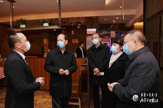 3月12日,自治區(qū)黨委書記、人大常委會主任石泰峰隨機(jī)走進(jìn)一家臨街餐館,檢查防疫措施,詢問員工返崗和營業(yè)情況。 內(nèi)蒙古日報社融媒體記者 袁永紅 攝