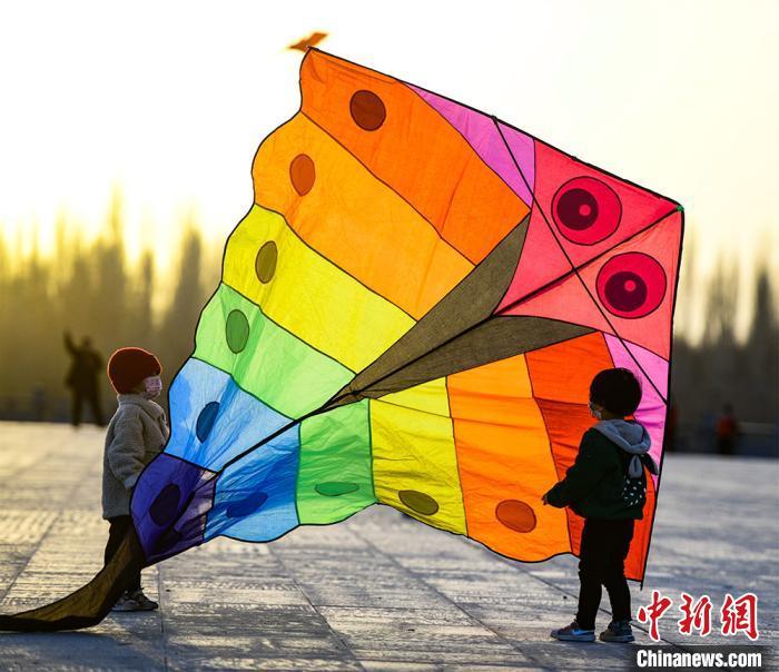 資料圖:3月22日,敦煌市民在敦煌鳴沙山下黨河大橋附近的空地上放風箏?!⊥醣筱y 攝