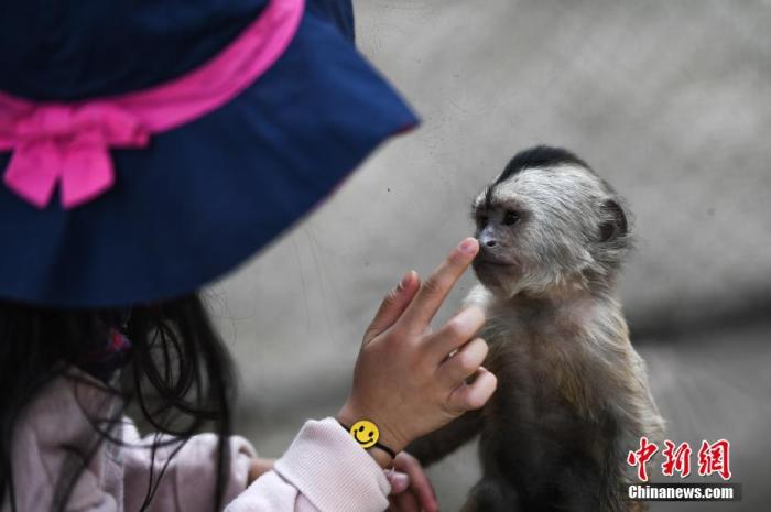資料圖:3月21日,一名兒童隔著玻璃與一只幼猴互動。當日,云南野生動物園正式恢復開放。中新社記者 康平 攝