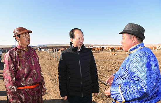 3月23日,自治區(qū)黨委書記、人大常委會主任石泰峰來到赤峰市克什克騰旗達來諾日鎮(zhèn)崗更嘎查西門塔爾牛養(yǎng)殖專業(yè)合作社,了解帶動已脫貧戶穩(wěn)定長效增收情況。內(nèi)蒙古日報社融媒體記者 袁永紅 攝