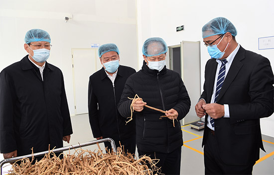 實現(xiàn)穩(wěn)定脫貧,發(fā)展產(chǎn)業(yè)是根本之策。石泰峰深入佰惠生新農(nóng)業(yè)、恒光大藥業(yè)、德青源農(nóng)業(yè)、宏發(fā)牧業(yè)、安琪酵母、恒都農(nóng)業(yè)等企業(yè)和部分專業(yè)合作社,考察特色產(chǎn)業(yè)發(fā)展、農(nóng)企利益聯(lián)結(jié)及帶貧促貧成效。當?shù)匾劳旋堫^企業(yè)和專業(yè)合作社帶動,因地制宜發(fā)展種養(yǎng)加工業(yè),探索走出了“甜菜富民”“中藥富民”“金雞富民”等帶貧減貧特色路。七合堂村通過懂技術、善經(jīng)營的帶頭人引領發(fā)展野果產(chǎn)業(yè),促進了群眾脫貧。石泰峰說,企業(yè)發(fā)展好了,扶貧效益才會更好,同時也能為鄉(xiāng)村振興提供有力支撐。種養(yǎng)殖業(yè)發(fā)展起來了,還可以“接二連三”,搞加工、搞旅游。他勉勵企業(yè)要提升規(guī)?;?jīng)營水平,不斷延伸產(chǎn)業(yè)鏈條,提高產(chǎn)品附加值,打造品牌,拓展市場,構(gòu)建穩(wěn)固利益聯(lián)結(jié)機制,讓發(fā)展成果更好惠及廣大群眾。