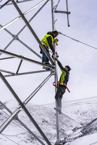在距離當雄縣城約80公里左右的烏瑪塘鄉(xiāng)巴嘎村,中國電信集團拉薩分公司當雄電信局的技術人員在調(diào)試基站設備(3月6日攝)。新華社記者 孫非/攝
