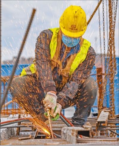 3月3日,四川省遂寧市田家渡渡改橋項目建設(shè)現(xiàn)場,工人在施工。劉昌松攝(影像中國)