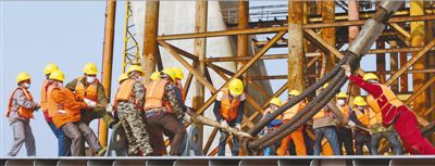 4月3日,濟(jì)南鳳凰路黃河大橋正在緊張施工。新華社記者 王 凱攝