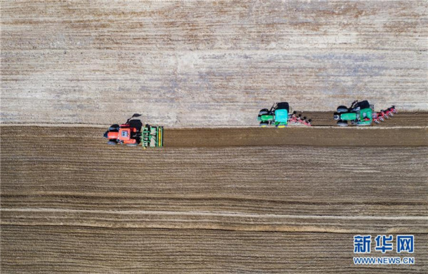 4月22日,西藏拉薩市曲水縣茶巴朗村農民利用現(xiàn)代化農業(yè)設備播種“藏青2000”。當日,西藏拉薩市曲水縣茶巴朗村進行“藏青2000”春播活動。西藏是全球唯一大規(guī)模集中種植青稞的地區(qū),也是青稞馴化和多樣化品種的栽培中心。新華社記者普布扎西 攝