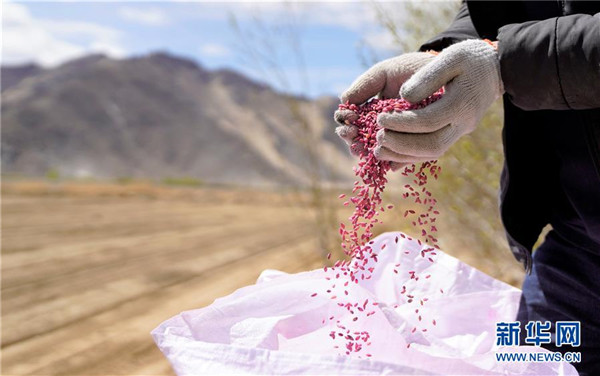 西藏拉薩市曲水縣茶巴朗村農民播種的“藏青2000”種子(4月22日攝)。4月22日,西藏拉薩市曲水縣茶巴朗村進行“藏青2000”春播活動。西藏是全球唯一大規(guī)模集中種植青稞的地區(qū),也是青稞馴化和多樣化品種的栽培中心。新華社記者普布扎西 攝