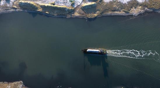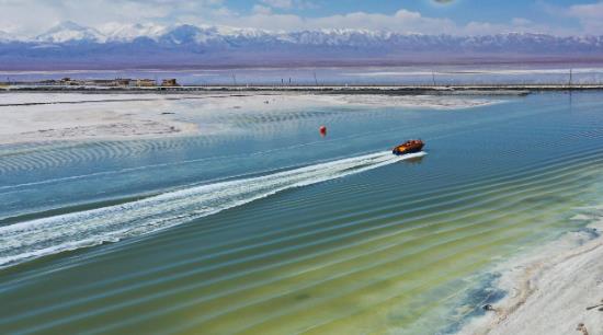 遠(yuǎn)處人工鹵水運(yùn)河上轟鳴聲陣陣,鹽湖游輪破風(fēng)而來,掀起一波波潔白的浪花,在陽光的照射下金光閃爍。乘坐游船航行在鹵水人工運(yùn)河上可以直觀體驗(yàn)工業(yè)遺風(fēng),欣賞全機(jī)械化的船采船運(yùn),感受茶卡鹽湖鹽業(yè)開采的滄桑巨變,是“原生態(tài)的鹽湖工業(yè)活景觀”。