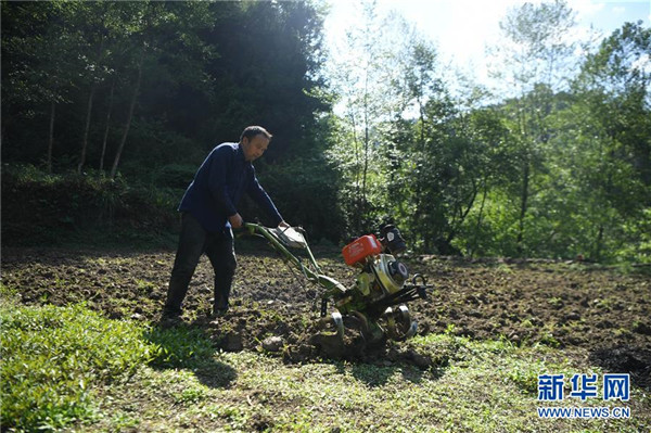 施六金在田間翻耕(4月24日攝)。1973年出生于十八洞村的施六金,由于父親患病很早就放棄學業(yè)和母親扛起了家庭的重擔。為了生活,他還曾遠去東南亞打工。2015年,看到家鄉(xiāng)的變化,施六金回到村里開起了農(nóng)家樂,年度家庭人均純收入也從2014年的1715元增長到了2019年的35696元。2018年,施六金與心愛的人組建了家庭。今年初,施六金與愛人迎來了一個大胖小子。“做人做事要懂得回報和感恩。”施六金給剛出生的兒子取名施澤恩。新華社記者薛宇舸攝
