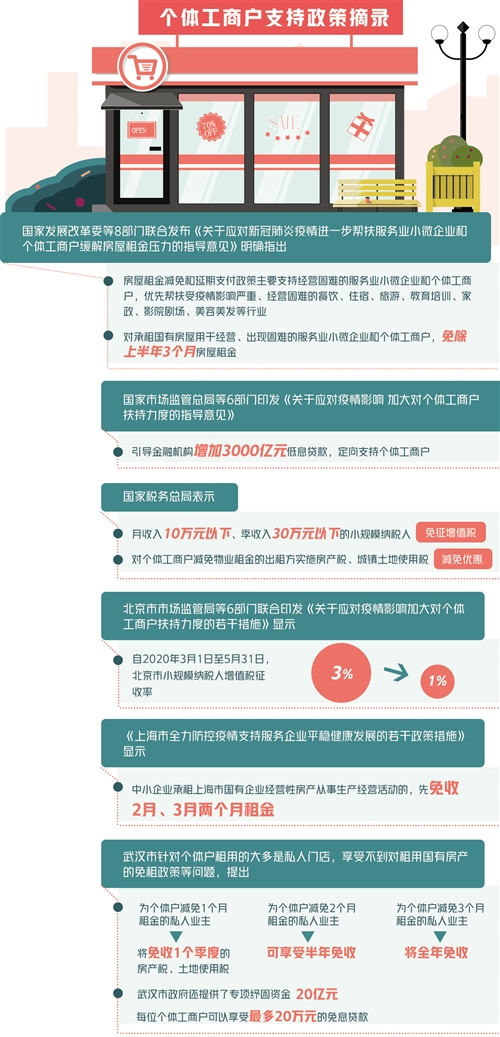 顯而易見,房租是個體工商戶最大的成本。黨中央、國務院一直高度關注中小微企業(yè)、個體戶的房租減免問題,并作出多次部署。早在疫情暴發(fā)初期,市場監(jiān)管總局等六部門出臺的《關于應對疫情影響 加大對個體工商戶扶持力度的指導意見》就提出鼓勵各地結合實際減免個體工商戶房租。
