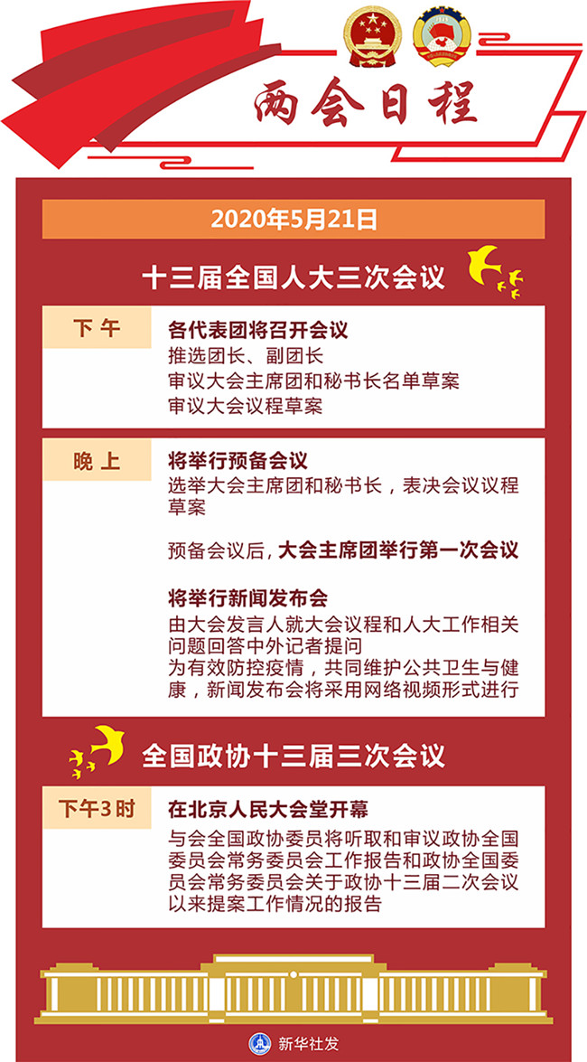 原標(biāo)題:5月21日:全國政協(xié)十三屆三次會議下午3時開幕 十三屆全國人大三次會議舉行預(yù)備會議