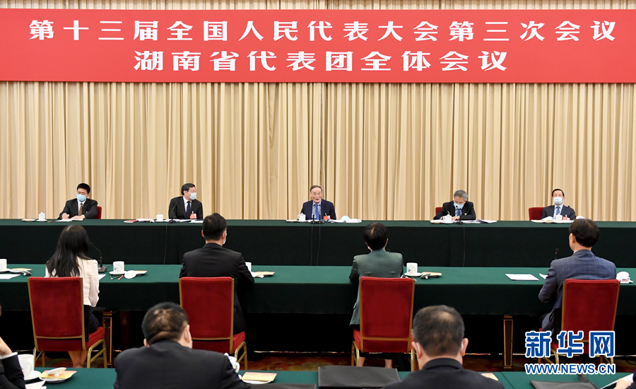5月24日,國家副主席王岐山參加十三屆全國人大三次會(huì)議湖南代表團(tuán)的審議。 新華社記者 岳月偉 攝